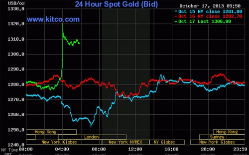 bảng giá trực tuyến Kitco đứng ở mức 1.309,6 USD/oz, tăng 25,9 USD/oz,